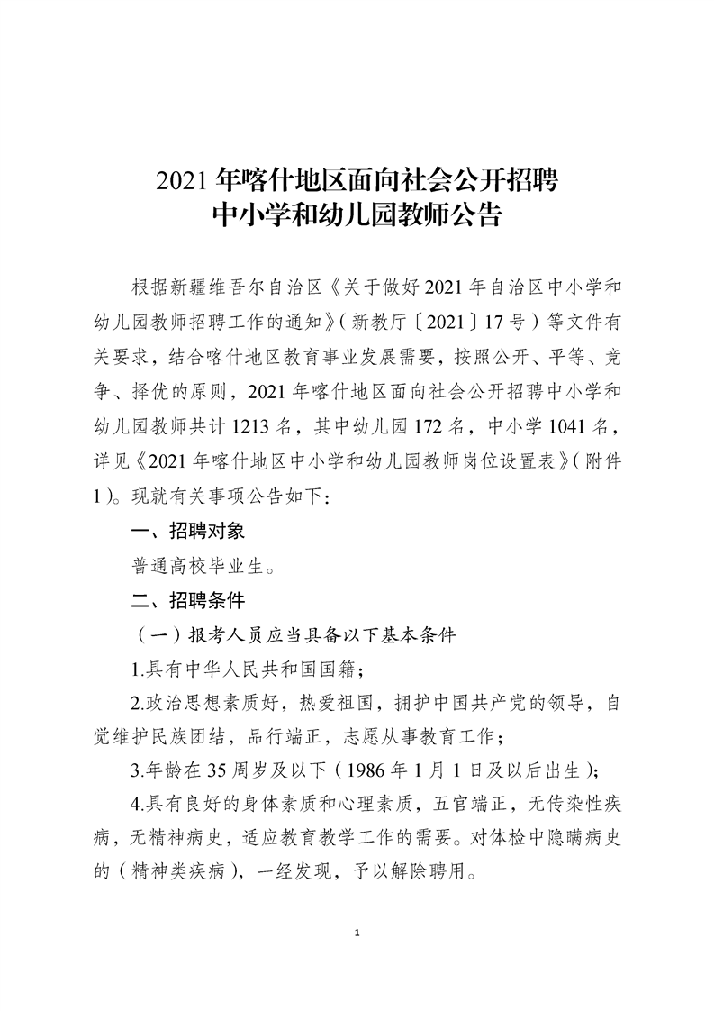 2021年喀什地區(qū)面向社會公開招聘中小學(xué)和幼兒園教師公告