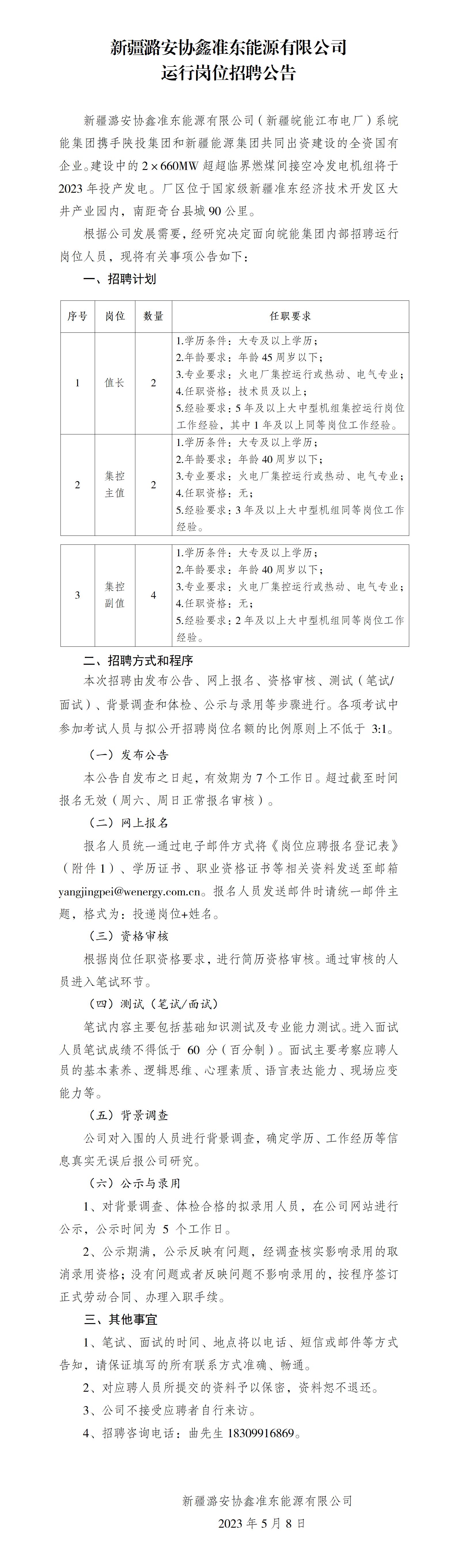 2023年新疆潞安協(xié)鑫準(zhǔn)東能源有限公司運(yùn)行崗位招聘公告