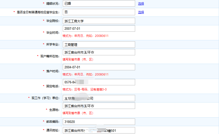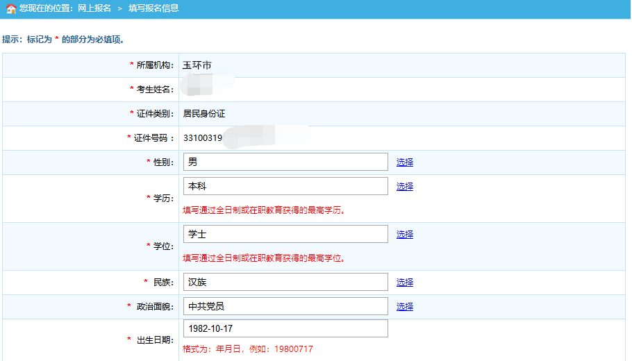 按照系統(tǒng)標紅的提示信息如實、準確、完整地填寫個人信息。