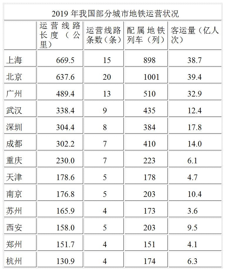 2019年末,我國城軌交通配屬地鐵列車6178列,全年實(shí)現(xiàn)地鐵客運(yùn)量227.76億人次。
