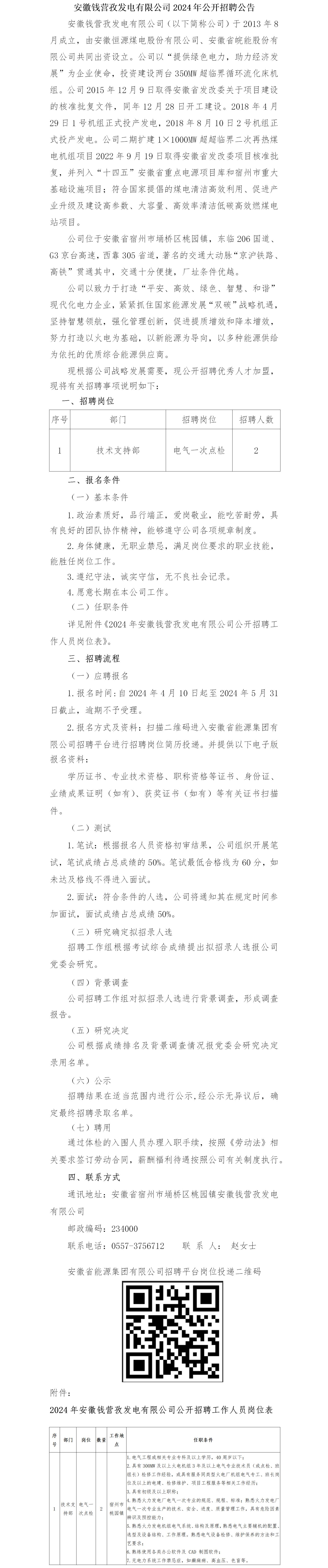 2024年宿州安徽錢營(yíng)孜發(fā)電有限公司公開(kāi)招聘公告