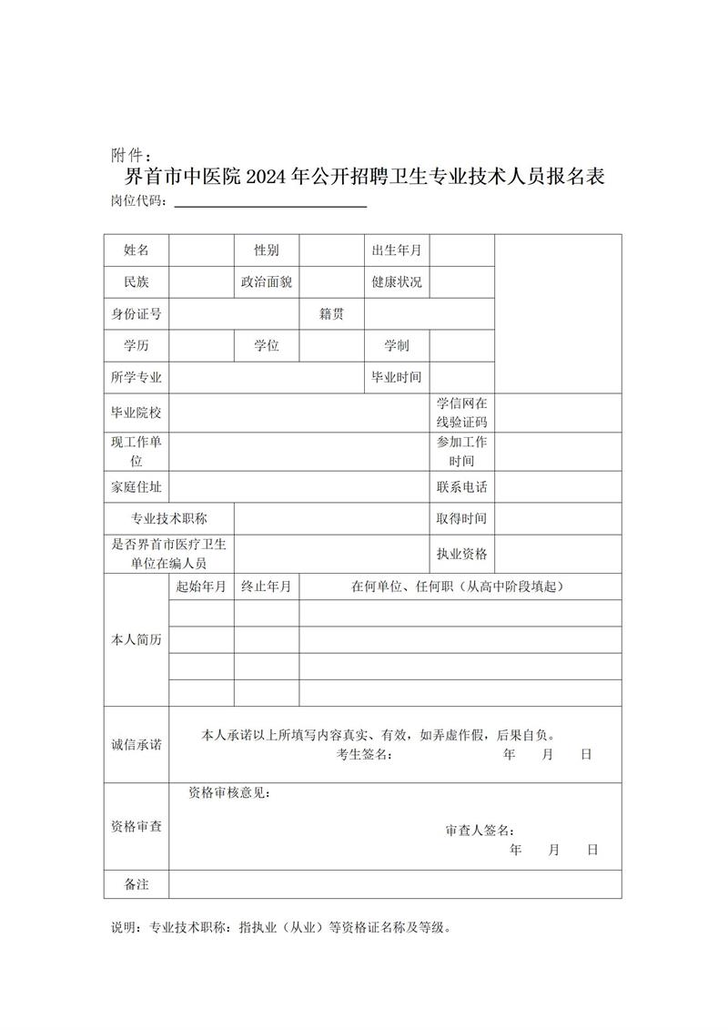(1)界首市中醫(yī)院門診樓四樓人事科現(xiàn)場(chǎng)報(bào)名。