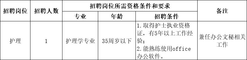因工作需要,休寧縣萬安鎮(zhèn)衛(wèi)生院經(jīng)研究決定通過黃山市仁和人力資源服務(wù)有限公司面向社會(huì)公開招聘護(hù)理人員1名,現(xiàn)將有關(guān)事項(xiàng)公告如下: