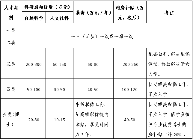 1、對于全職引進的博士及以上高層次人才,按照《皖南醫(yī)學(xué)院引進高層次人才實施辦法(修訂)》(校政[2018]191號)(http://rsc.wnmc.edu.cn/63/10/c1981a90896/page.htm)提供購房補貼、安家費、科研啟動經(jīng)費等。標(biāo)準(zhǔn)如下: