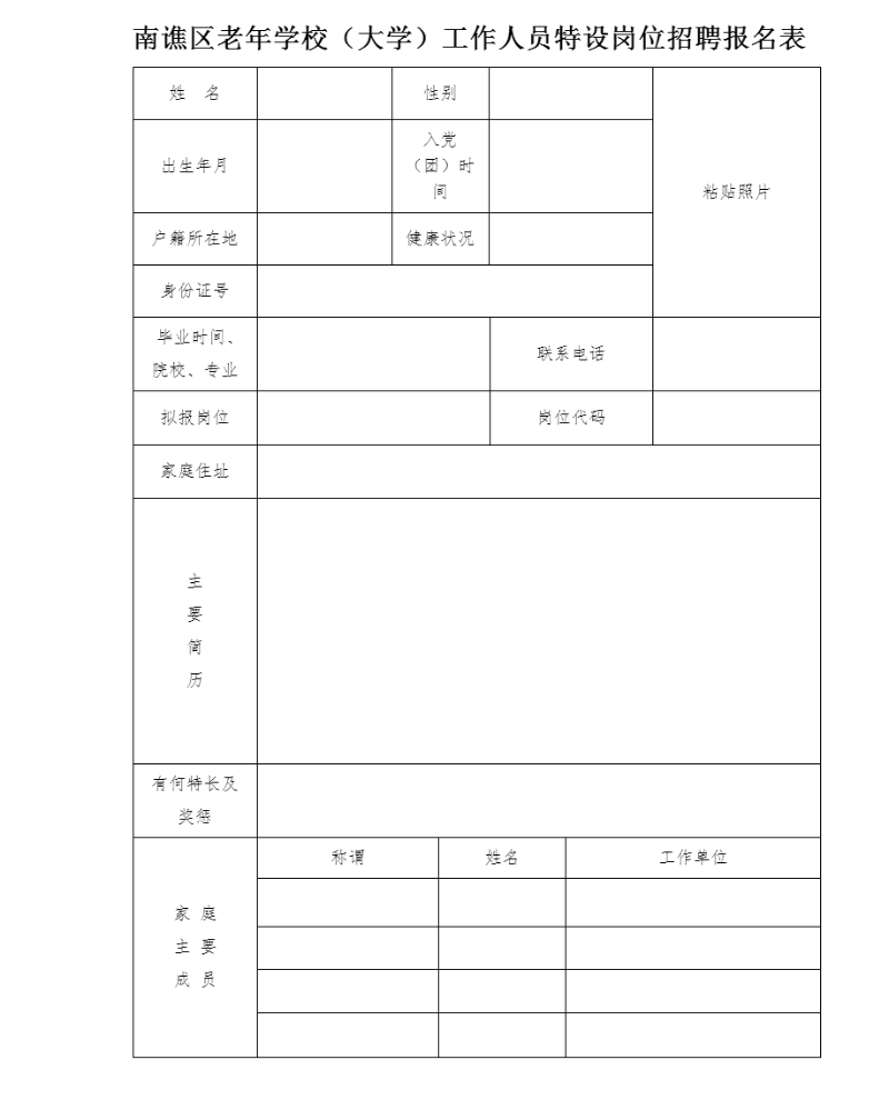 附件:1.南譙區(qū)老年學(xué)校(大學(xué))工作人員特設(shè)崗位招聘報(bào)名表