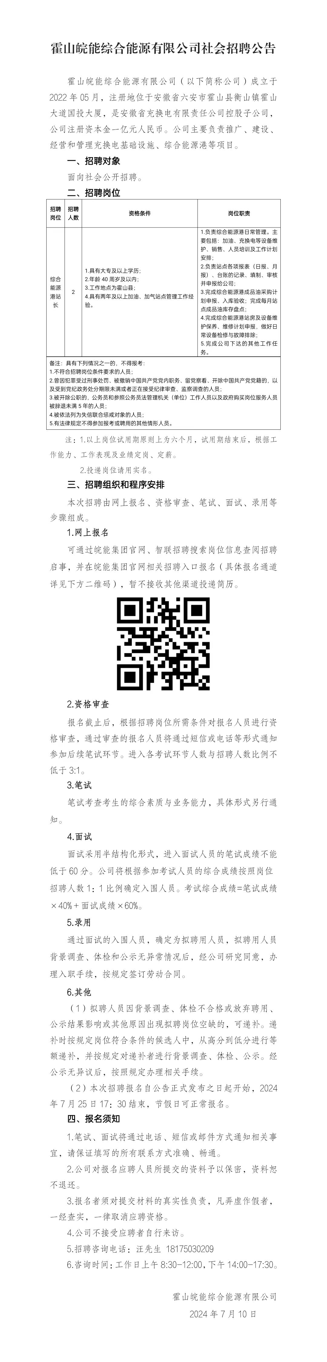 2024年六安霍山皖能綜合能源有限公司社會招聘公告