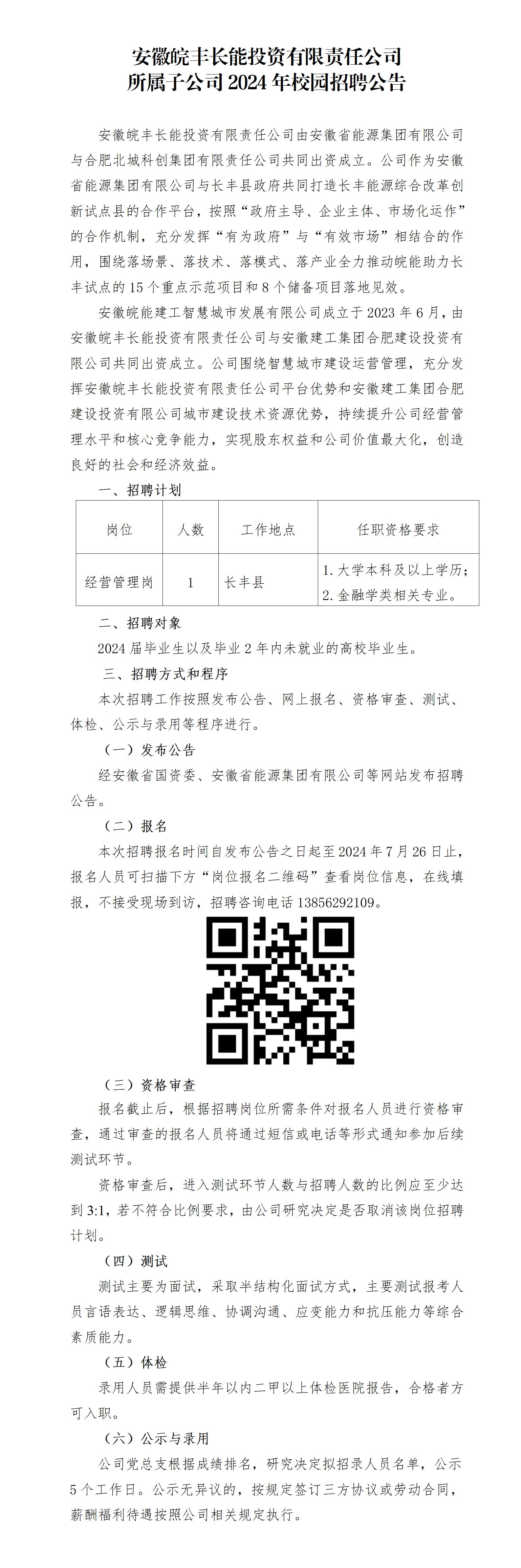 2024年安徽皖豐長能投資有限責(zé)任公司所屬子公司校園招聘公告