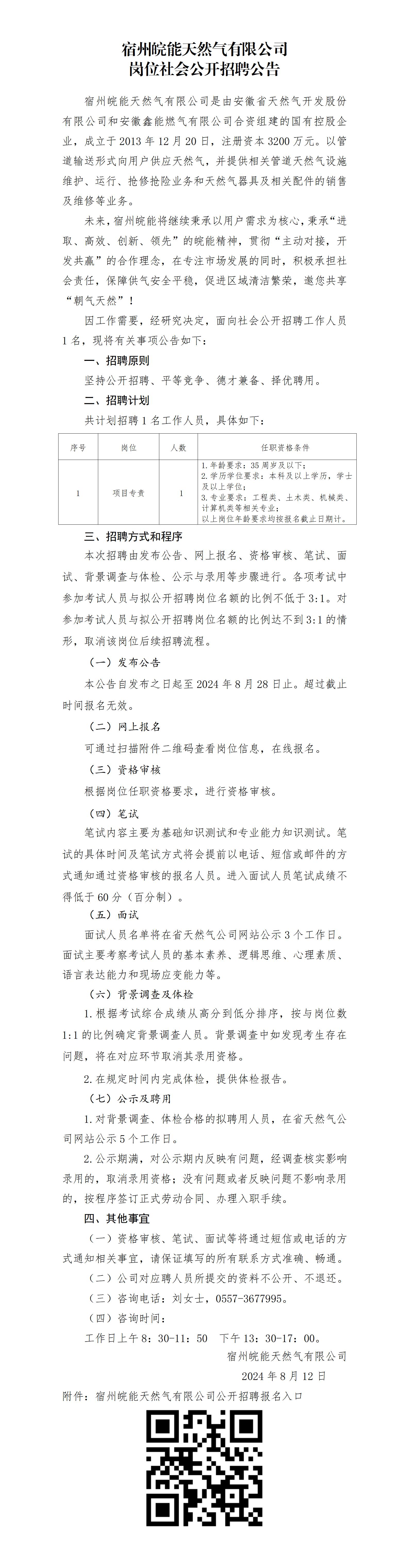 2024年宿州皖能天然氣有限公司崗位社會公開招聘公告