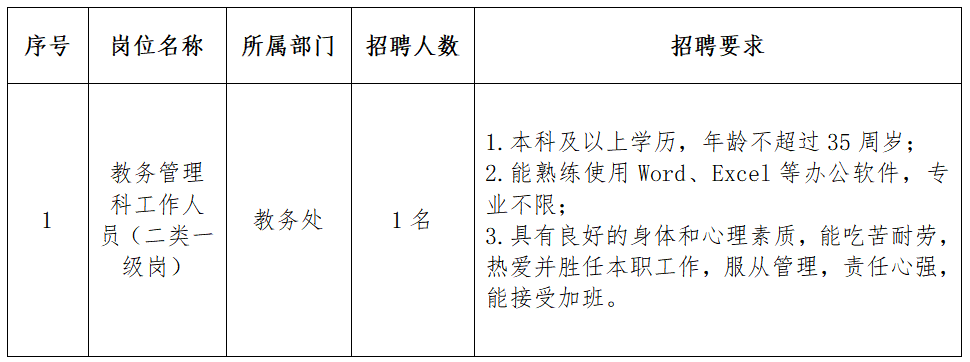 因工作需要,黃山學院委托黃山市仁和人力資源開發(fā)有限公司面向社會公開招聘勞務(wù)派遣工作人員1名。現(xiàn)將有關(guān)事項公布如下: