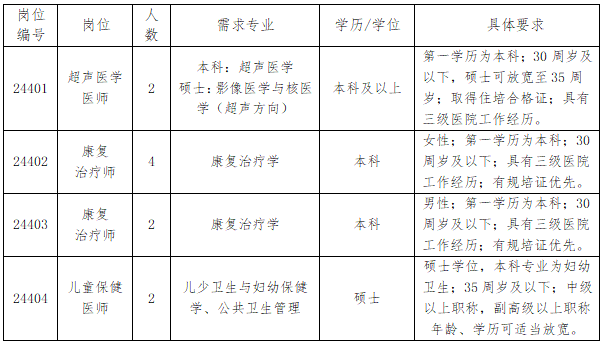 醫(yī)院2024年公開招聘工作人員崗位表(第三批)