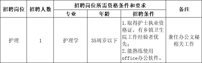 因工作需要,休寧縣萬安鎮(zhèn)衛(wèi)生院經(jīng)研究決定通過黃山市仁和人力資源服務(wù)有限公司面向社會公開招聘護理人員1名,現(xiàn)將有關(guān)事項公告如下: