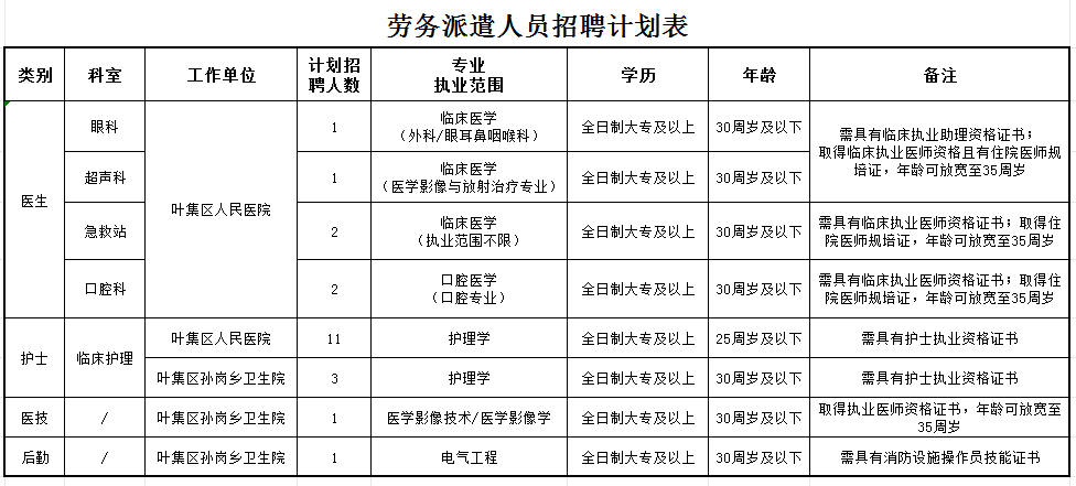 2024-12-13 10:52:27閱讀()六安市葉集區(qū)人民醫(yī)院因業(yè)務發(fā)展需要,合肥市人先人力資源有限公司面向社會公開招聘派遣制員工若干名,派遣至六安市葉集區(qū)人民醫(yī)院(市六院),現(xiàn)將有關事項通知如下: