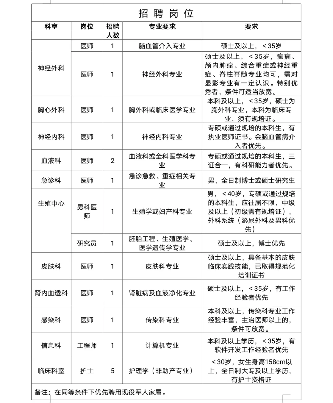 醫(yī)院根據(jù)工作需要,急招醫(yī)療、信息科等部分崗位若干名。(具體見(jiàn)下表)