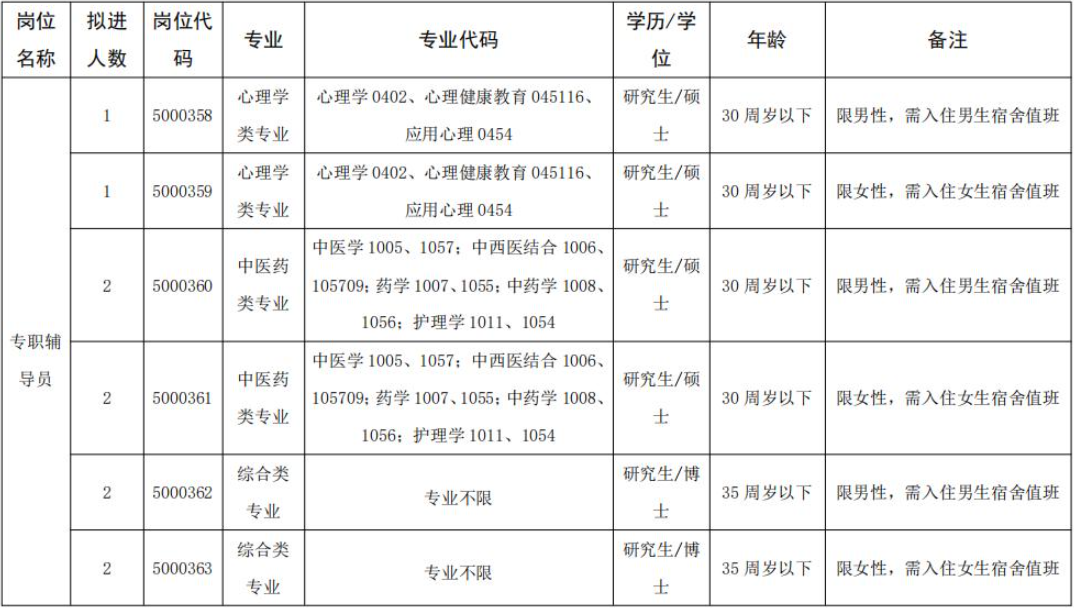 2025-04-11 10:15:01閱讀()安徽中醫(yī)藥大學(xué)安徽中醫(yī)藥大學(xué)2025年度專職輔導(dǎo)員公開招聘公告為進(jìn)一步加強(qiáng)我校專職輔導(dǎo)員隊(duì)伍建設(shè),根據(jù)《事業(yè)單位人事管理?xiàng)l例》(國(guó)務(wù)院令第652號(hào))、中共安徽省委組織部、安徽省人力資源和社會(huì)保障廳《關(guān)于印發(fā)〈安徽省事業(yè)單位公開招聘人員暫行辦法〉的通知》(皖人社發(fā)〔2010〕78號(hào))等文件精神,現(xiàn)將2025年度編制內(nèi)專職輔導(dǎo)員公開招聘公告有關(guān)事項(xiàng)公告如下: