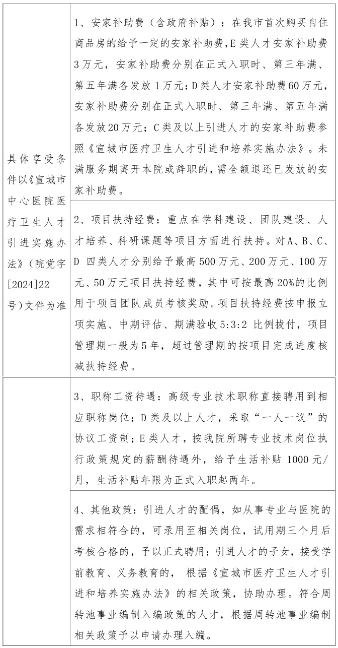 (三)本公告未規(guī)定的以上級主管部門政策為準(zhǔn),未盡事宜由宣城市中心醫(yī)院公開招聘工作領(lǐng)導(dǎo)組研究決定。