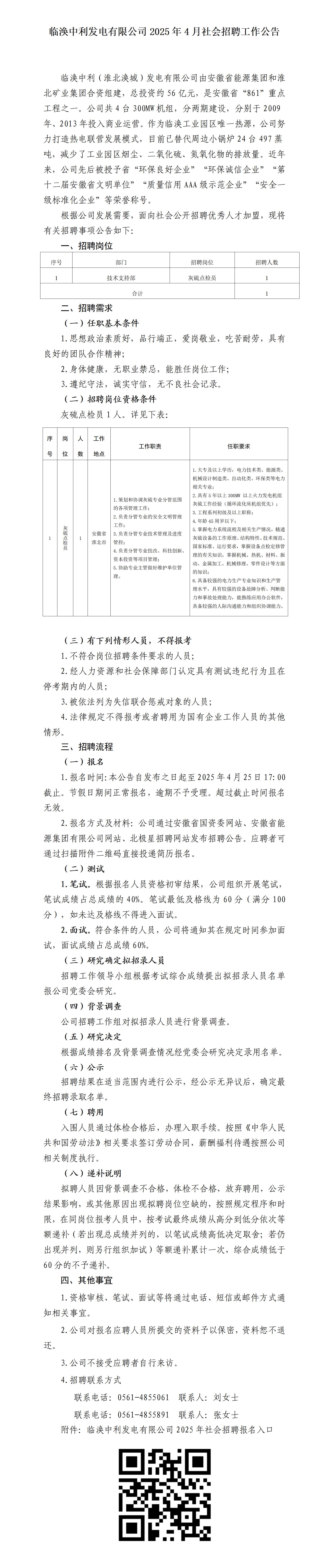 2025年淮北臨渙中利發(fā)電有限公司社會招聘工作公告