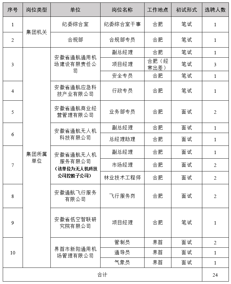(一)安徽省通航控股集團(tuán)有限公司根據(jù)擬聘用人員工作履歷、資格條件等情況,合理調(diào)配聘用崗位和聘用公司,應(yīng)聘者報(bào)名即默認(rèn)服從安徽省通航控股集團(tuán)有限公司的工作安排。