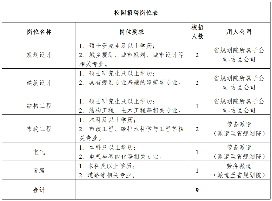 2.應聘條件:詳見附件《安徽省城鄉(xiāng)規(guī)劃設計研究院有限公司及所屬方圓公司2025年度第一次社會、校園公開招聘崗位表》。