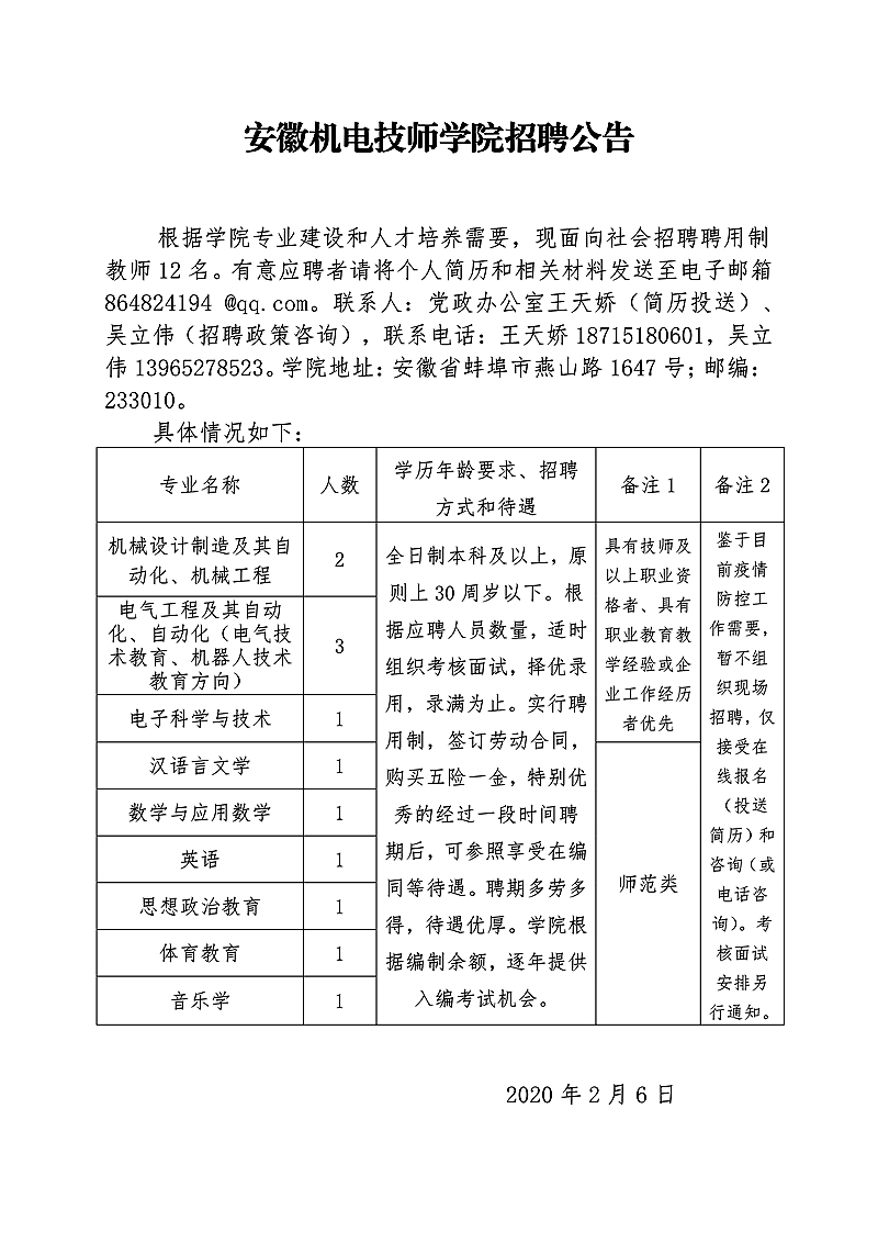 2020年安徽機電技師學(xué)院招聘公告