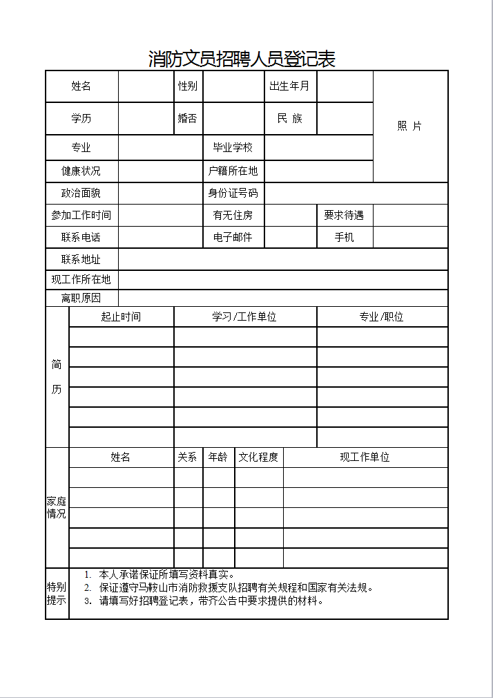 下載并填寫《消防文員招聘人員登記表》