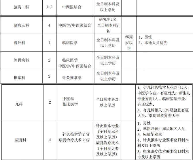 2021年潁上縣中醫(yī)院醫(yī)療衛(wèi)生專業(yè)技術(shù)人員招聘計劃表