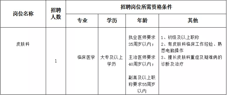因?qū)W科建設和業(yè)務發(fā)展需要,經(jīng)研究,醫(yī)院面向社會公開招聘皮膚科衛(wèi)生專業(yè)技術(shù)人員?,F(xiàn)將有關(guān)事項公告如下: