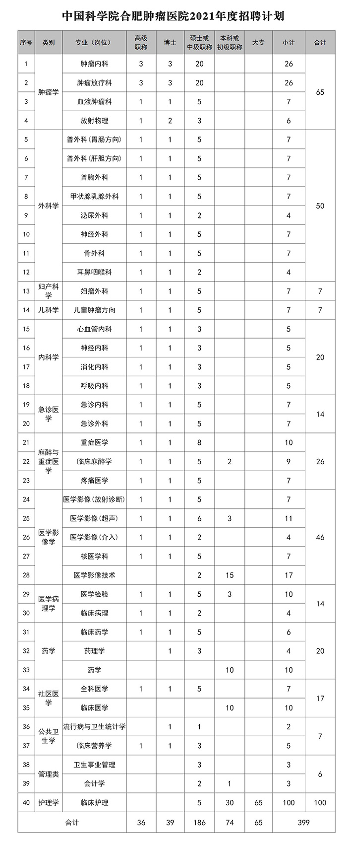 2021年中國科學(xué)院合肥腫瘤醫(yī)院招聘公告