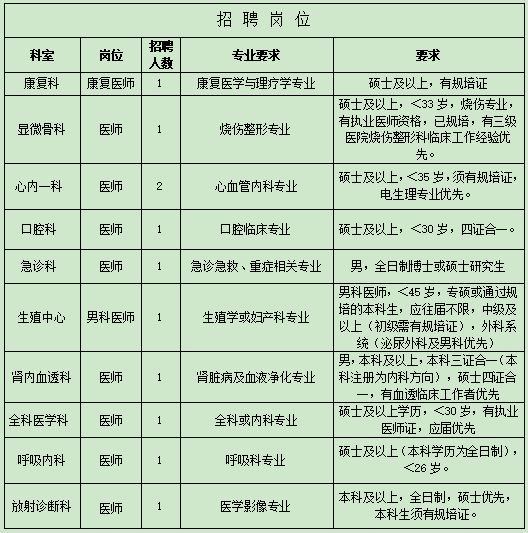 醫(yī)院根據(jù)工作需要,急招醫(yī)療、護理等部分崗位若干名。(具體見下表)