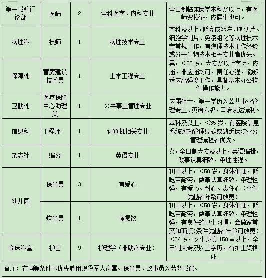 2、身心健康,熱愛軍隊醫(yī)療事業(yè),并能勝任本專業(yè)工作。(信息科工程師招聘人數(shù)為2人)