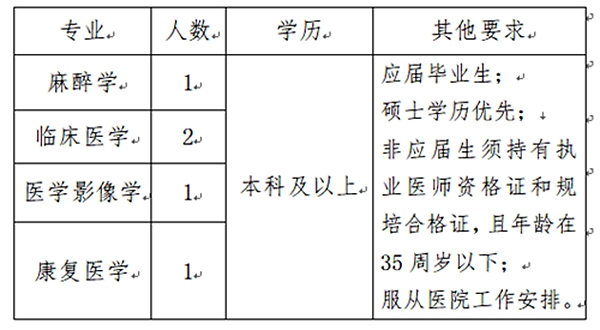 2021-07-22 19:05:12閱讀()銅陵市第四人民醫(yī)院根據(jù)醫(yī)院業(yè)務(wù)發(fā)展的需要,現(xiàn)面向社會(huì)公開招聘5人,具體公告如下: