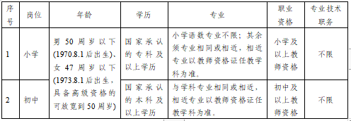 小學(xué)教師面向全縣農(nóng)村在編在崗滿3年(定崗招聘的教學(xué)點(diǎn)教師工作滿5年)的小學(xué)教師和2018年招聘且服務(wù)期滿留用的小學(xué)特崗教師選調(diào),初中教師面向全縣農(nóng)村在編在崗滿3年(定崗招聘的邊遠(yuǎn)初中教師工作滿5年)的初中教師和2018年招聘且服務(wù)期滿留用的初中特崗教師選調(diào)。