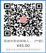 4、掃碼繳費(fèi)。應(yīng)聘者掃碼繳納報(bào)名費(fèi)用45元。請用支付寶掃碼后添加備注,注明考生姓名、報(bào)考崗位。根據(jù)安徽省財(cái)政廳、安徽省物價(jià)局財(cái)綜〔2013〕2568號文件規(guī)定,按每人每科45元標(biāo)準(zhǔn)收取筆試費(fèi)用。享受國家最低生活保障金城鎮(zhèn)家庭和農(nóng)村特困家庭的報(bào)考人員享受減免考試費(fèi)用政策(先交后退,退費(fèi)時需提供相關(guān)材料)。