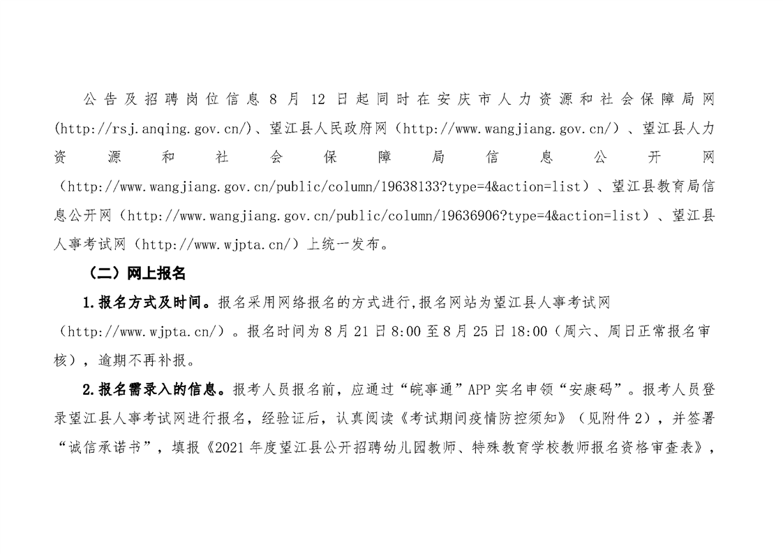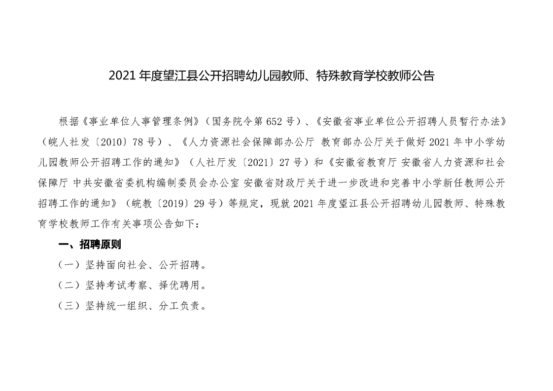 2021年安慶望江縣公開招聘幼兒園教師、特殊教育學(xué)校教師公告