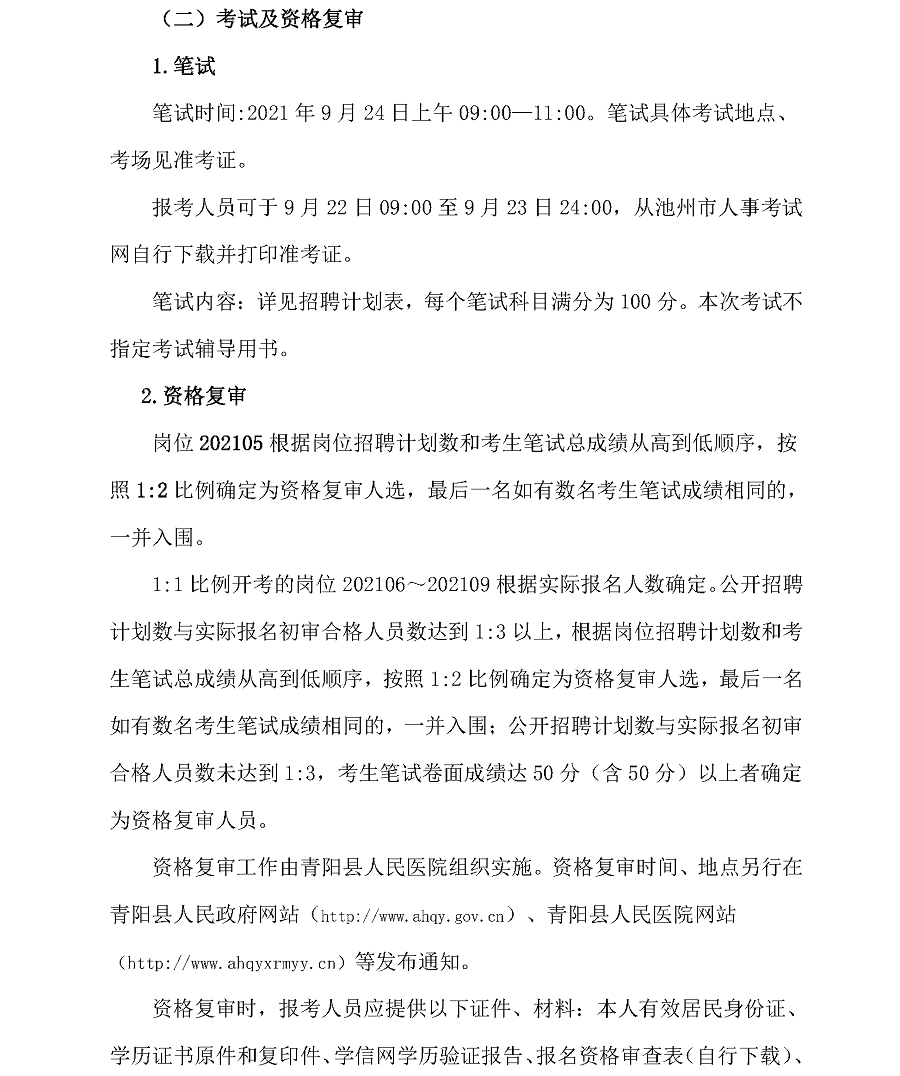 2021年池州青陽縣人民醫(yī)院公開招聘衛(wèi)生專業(yè)技術(shù)人員公告(第二批)