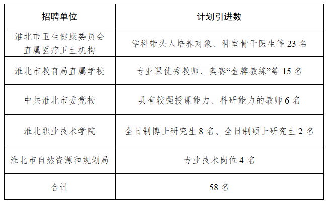 計(jì)劃引進(jìn)急需緊缺人才58名(具體崗位及資格條件見附件)。