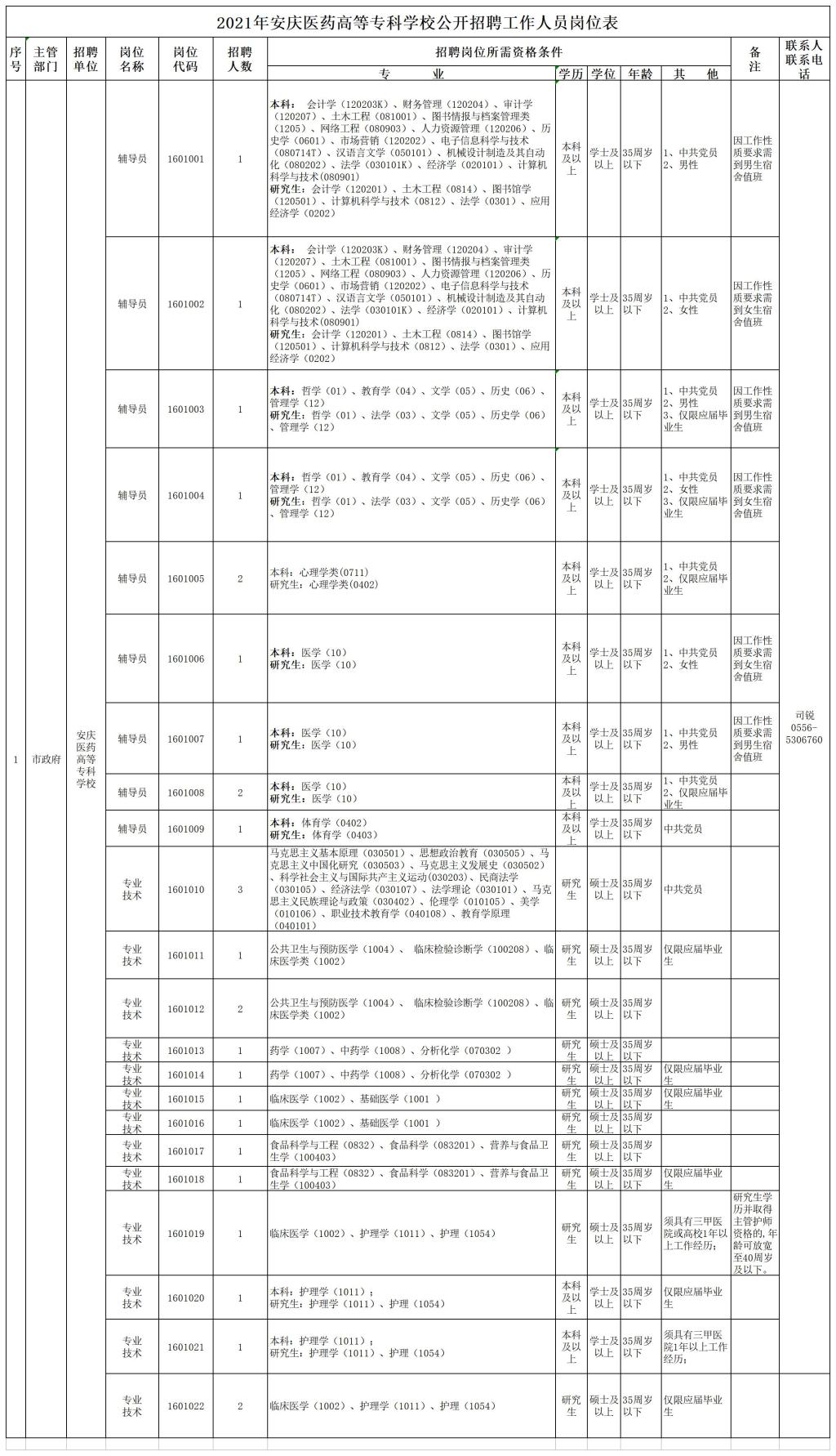 2021年安慶醫(yī)藥高等??茖W(xué)校公開招聘工作人員公告