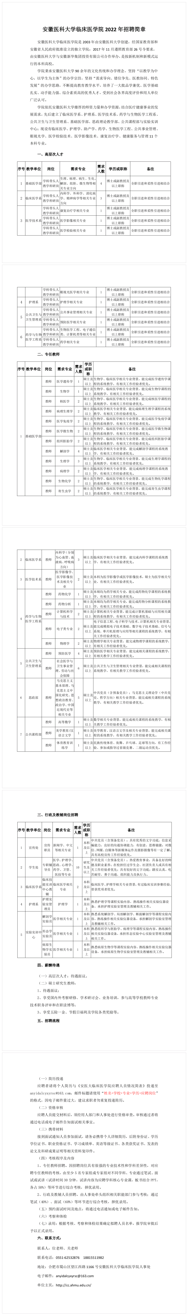 2022年安徽醫(yī)科大學(xué)臨床醫(yī)學(xué)院招聘簡章