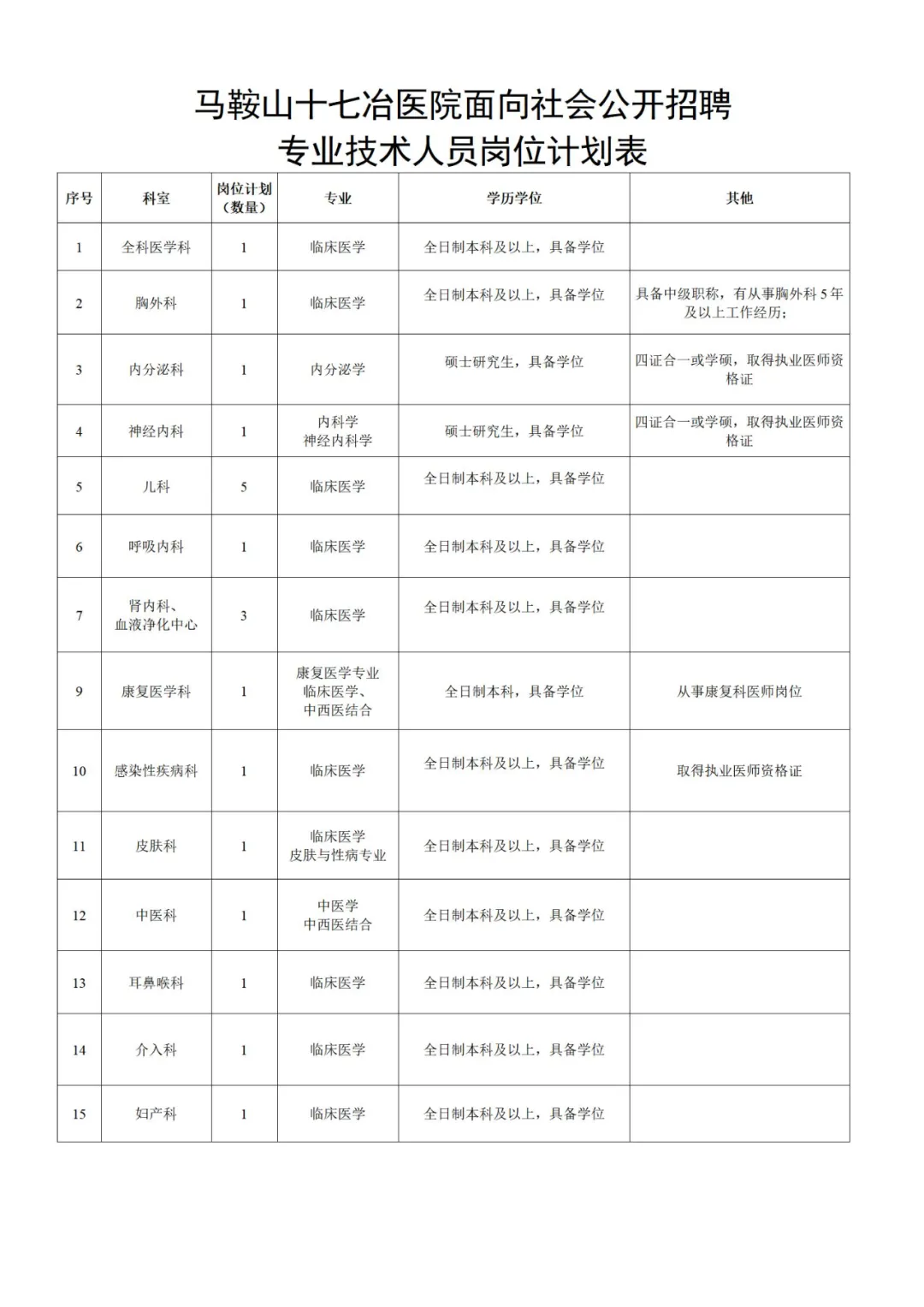 個人應(yīng)聘材料發(fā)送至馬鞍山十七冶醫(yī)院人力資源部郵箱,并備注:姓名+應(yīng)聘崗位+手機號。