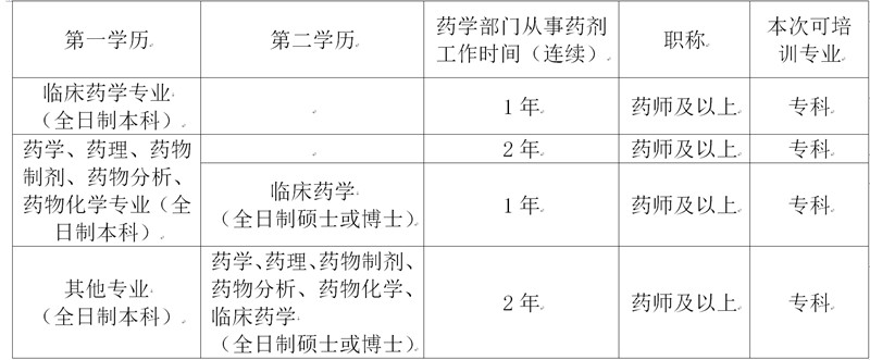 (一)已完成臨床藥師通科培訓(xùn),并已取得通科培訓(xùn)證書,且同時滿足下表要求