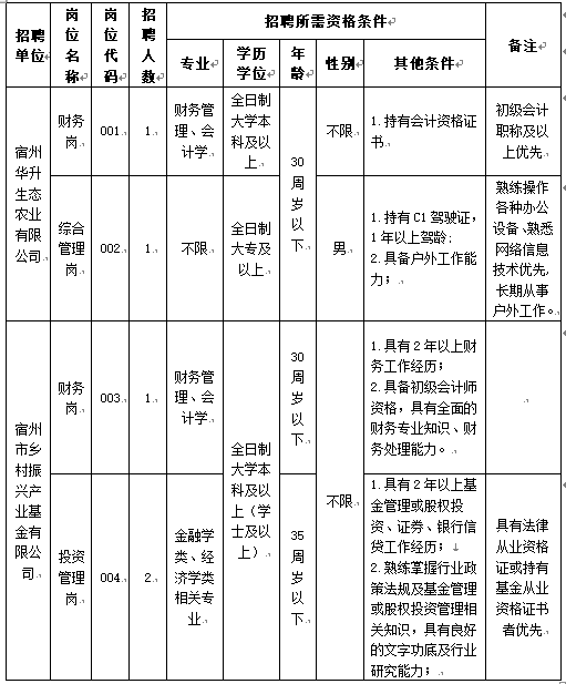 宿州市鄉(xiāng)村振興投資集團(tuán)有限公司是我市市屬國(guó)有企業(yè),是推動(dòng)我市農(nóng)業(yè)農(nóng)村發(fā)展,加快推進(jìn)鄉(xiāng)村振興的重要平臺(tái)。為建立健全現(xiàn)代企業(yè)制度,充實(shí)子公司人員隊(duì)伍,根據(jù)集團(tuán)發(fā)展需要及子公司用工實(shí)際,根據(jù)相關(guān)規(guī)定,經(jīng)集團(tuán)公司研究,擬面向社會(huì)公開(kāi)招聘工作人員5名,其中宿州市鄉(xiāng)村振興產(chǎn)業(yè)基金有限公司3名,宿州華升生態(tài)農(nóng)業(yè)有限公司2名?,F(xiàn)將有關(guān)事項(xiàng)公告如下: