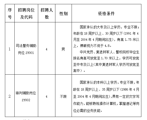 1.基本條件:具有中華人民共和國國籍,擁護中華人民共和國憲法,擁護中國共產黨領導和社會主義制度;具有良好的政治素養(yǎng)、專業(yè)能力和職業(yè)操守;熱愛法院工作,服從單位分配,品行端正,心理健康,愛崗敬業(yè),吃苦耐勞,有較好的群眾溝通能力;熟悉法律基礎知識;身體健康,五官、體型端正;無口吃、無重聽、無生理缺陷、紋身等特征。