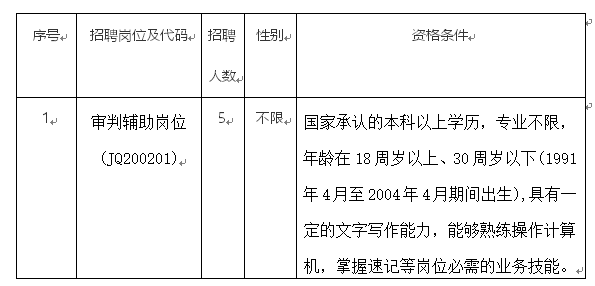 1.基本條件:具有中華人民共和國(guó)國(guó)籍,擁護(hù)中華人民共和國(guó)憲法,擁護(hù)中國(guó)共產(chǎn)黨領(lǐng)導(dǎo)和社會(huì)主義制度;具有良好的政治素養(yǎng)、專業(yè)能力和職業(yè)操守;熱愛法院工作,服從單位分配,品行端正,心理健康,愛崗敬業(yè),吃苦耐勞,有較好的群眾溝通能力;熟悉法律基礎(chǔ)知識(shí);身體健康,五官、體型端正;無(wú)口吃、無(wú)重聽、無(wú)生理缺陷、紋身等特征。