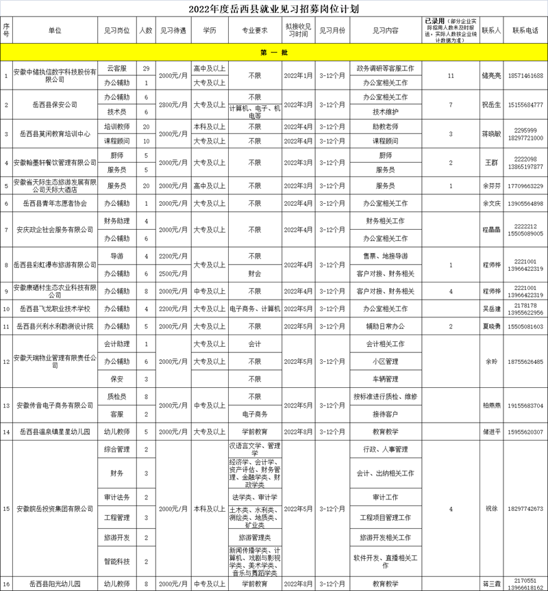 附件:《2022年度岳西縣就業(yè)見(jiàn)習(xí)招募崗位計(jì)劃(第二批)》(含第一批未招滿)