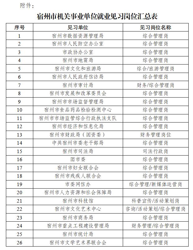 附件:宿州市機關(guān)事業(yè)單位就業(yè)見習崗位匯總表