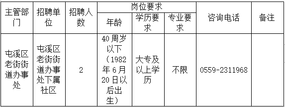 為切實加強街道工作人員的隊伍管理和建設(shè),解決工作人員不足問題,根據(jù)《屯溪區(qū)機關(guān)事業(yè)單位編外人員管理辦法》規(guī)定和要求,結(jié)合屯溪區(qū)老街街道辦事處工作實際所需,經(jīng)核準,屯溪區(qū)老街街道辦事處委托黃山市仁和人力資源服務(wù)有限公司面向社會公開招聘2名社區(qū)專職工作者。現(xiàn)將有關(guān)事項公告如下: