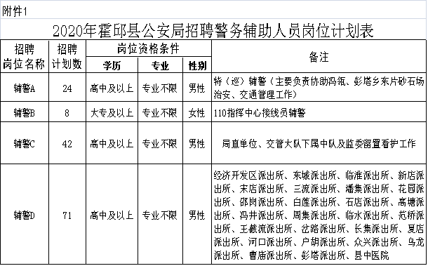 2020-06-30 23:07:25閱讀()霍邱縣人民政府根據(jù)全縣公安工作需要,經(jīng)霍邱縣人民政府批準(zhǔn),霍邱縣公安局面向社會(huì)公開選聘警務(wù)輔助人員,現(xiàn)公告如下: