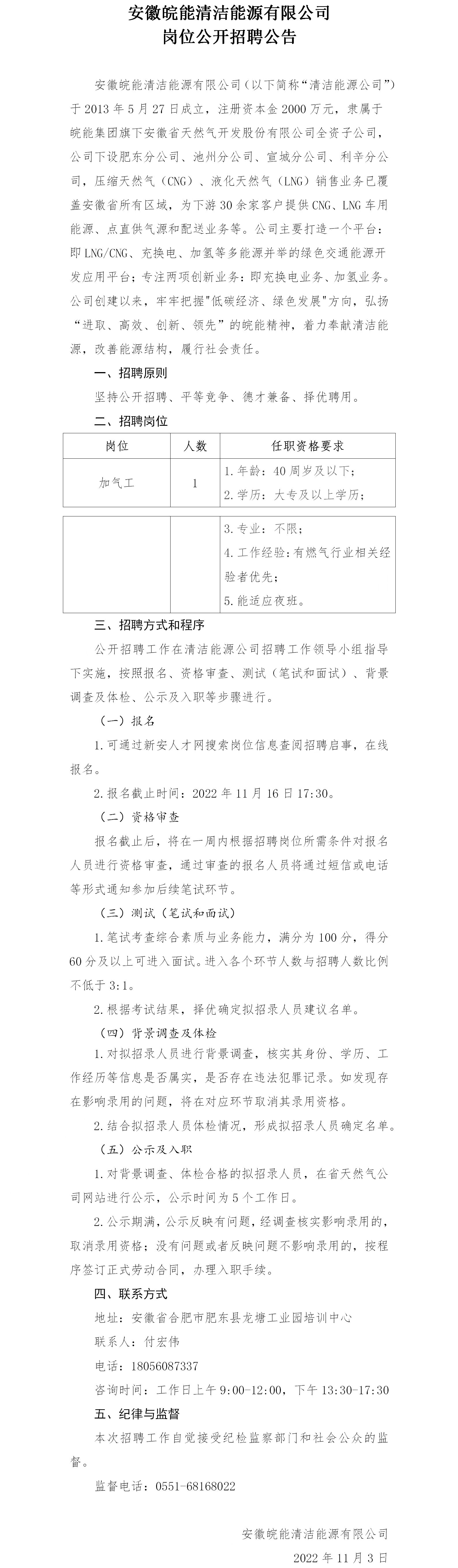 2022年安徽皖能清潔能源有限公司崗位公開招聘公告
