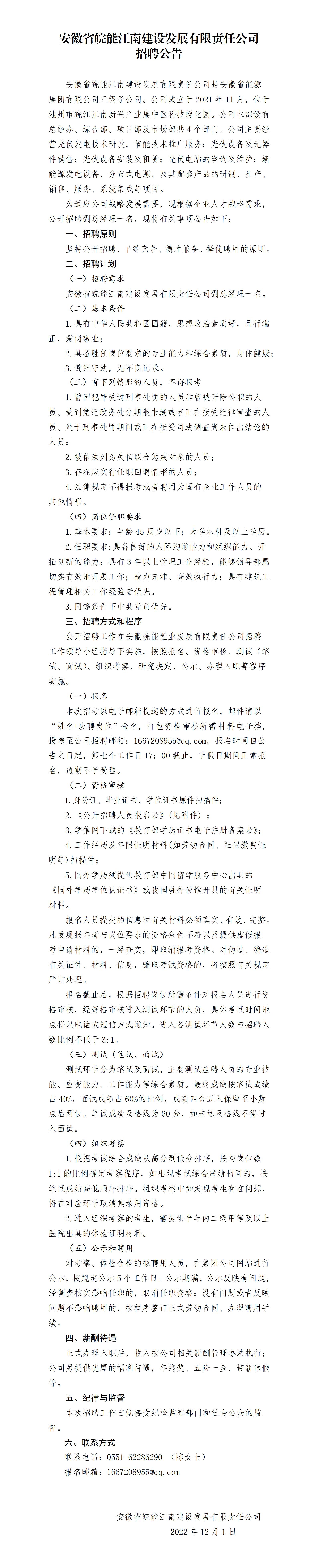 2022年安徽省皖能江南建設(shè)發(fā)展有限責(zé)任公司招聘公告