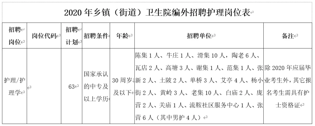 本次計(jì)劃招聘中專及以上學(xué)歷護(hù)理崗位人員63名(詳見(jiàn)下表)