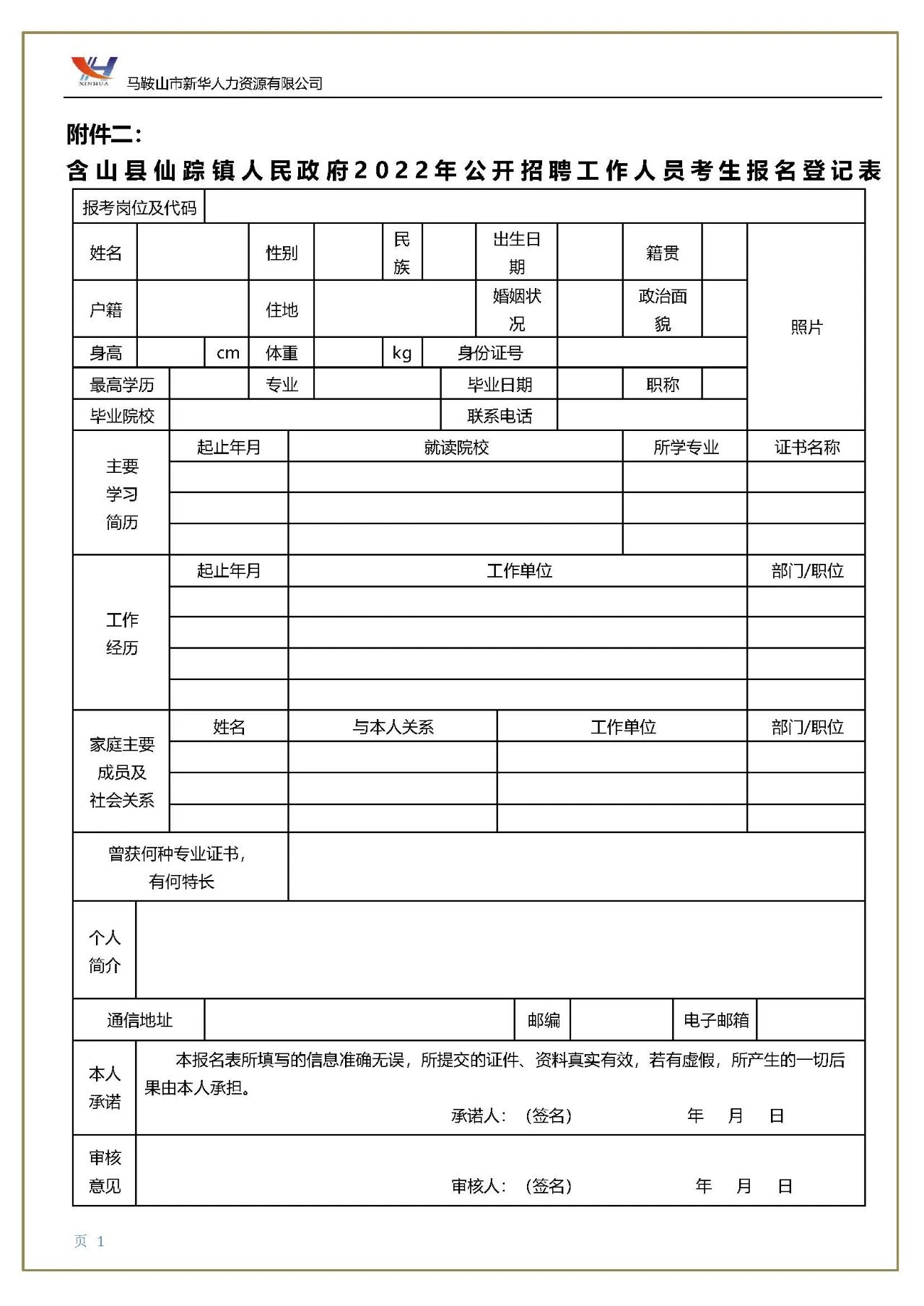 (1)本人簽名確認(rèn)的《含山縣仙蹤鎮(zhèn)人民政府2022年公開招聘工作人員考生報(bào)名登記表》(附件二,請(qǐng)自行下載填寫并打印);